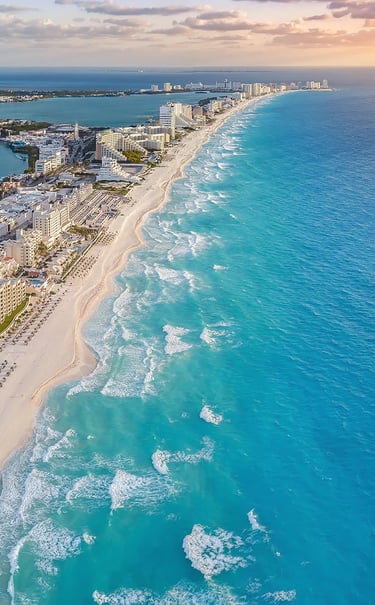 Cancún es uno de los destinos más reconocidos del Caribe mexicano, famoso por sus playas de arena blanca y aguas turquesa. Su zona hotelera ofrece una amplia variedad de experiencias frente al mar y acceso a atractivos naturales y culturales de la región.